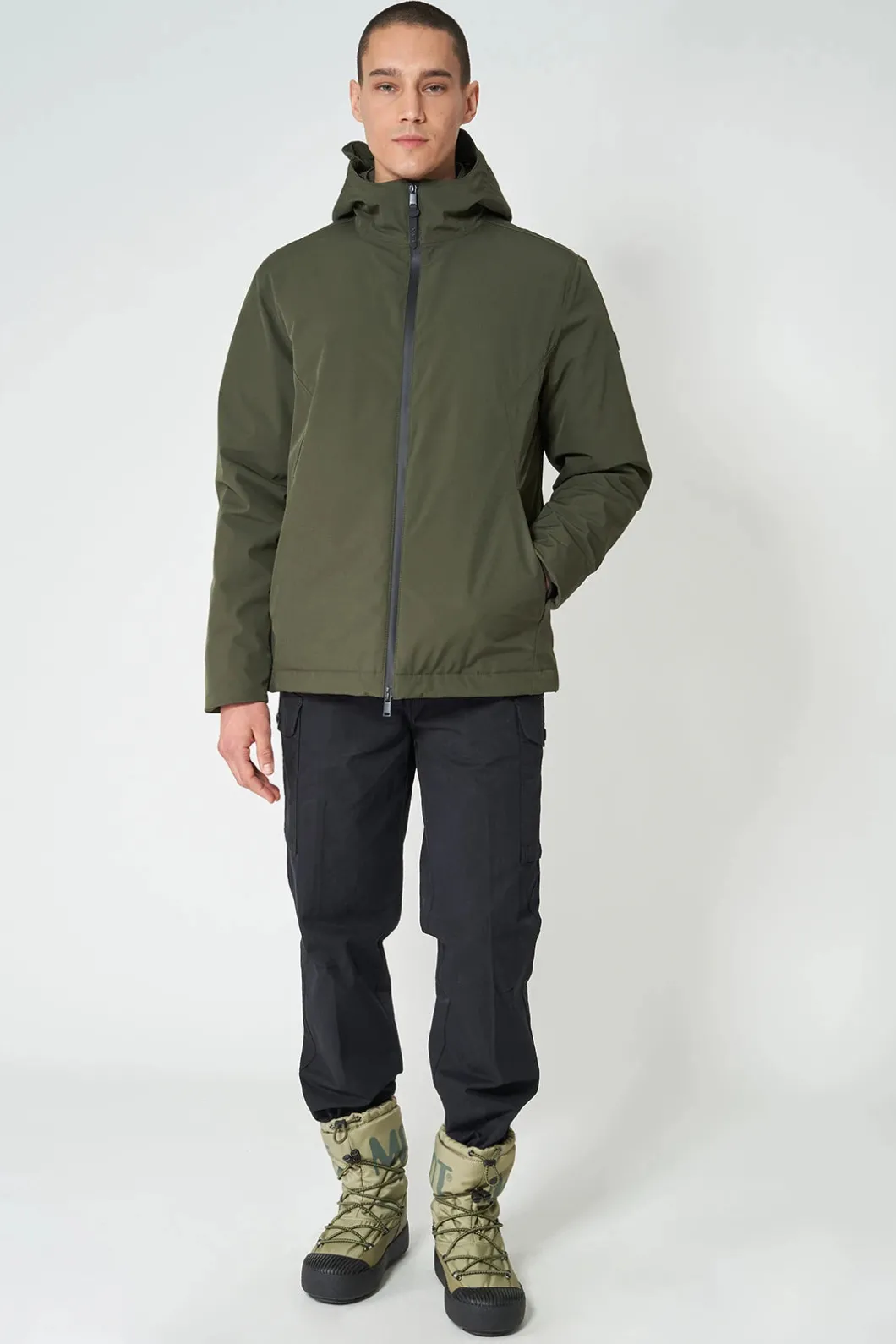 – Bolsillos en costura con cremalleras impermeables ocultas.