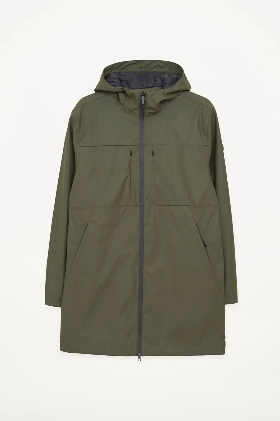 – Bolsillos en costura con cremalleras impermeables ocultas.