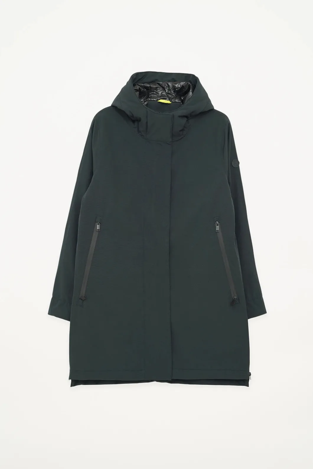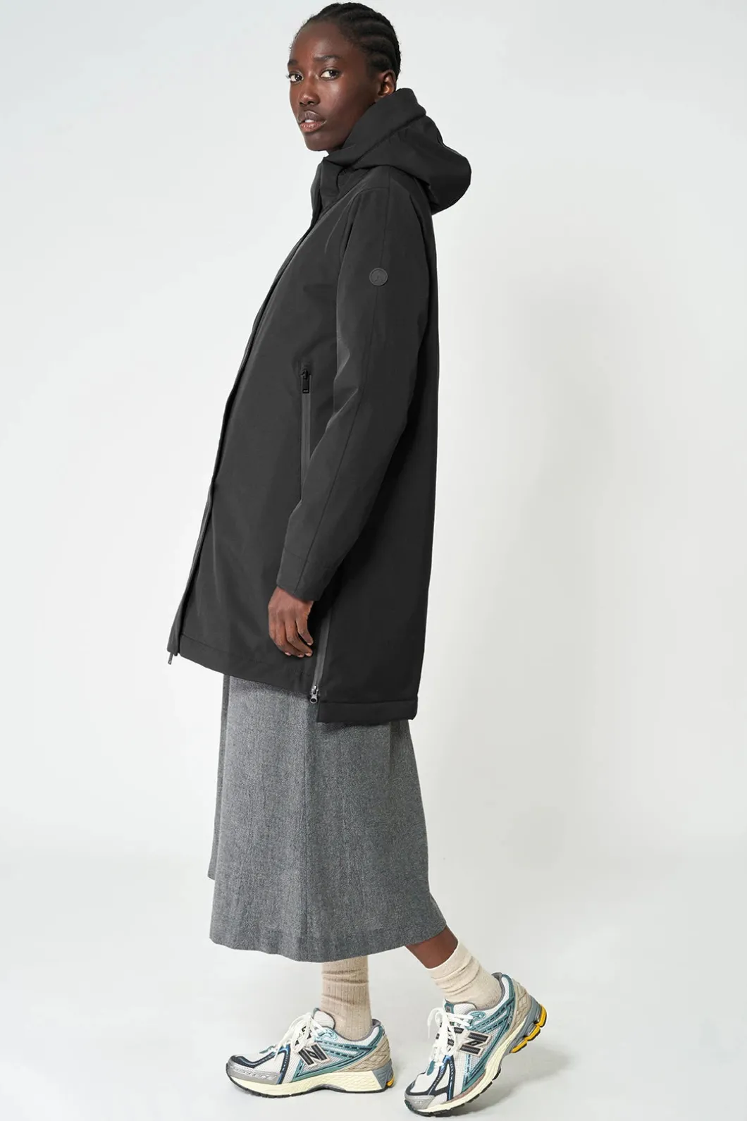 Confeccionada con nuestro característico tejido Softshell y una ligera capa aislante transpirable y sin plumas, esta chaqueta de corte recto presenta todas las costuras selladas para una protección superior. Con bolsillos con cremalleras largas impermeables de doble cursor, se cierra con una cremallera impermeable de doble cursor cubierta con una solapa con cierres magnéticos. Su diseño moderno y atemporal hacen de este modelo una prenda imprescindible en cualquier armario de otoño-invierno.