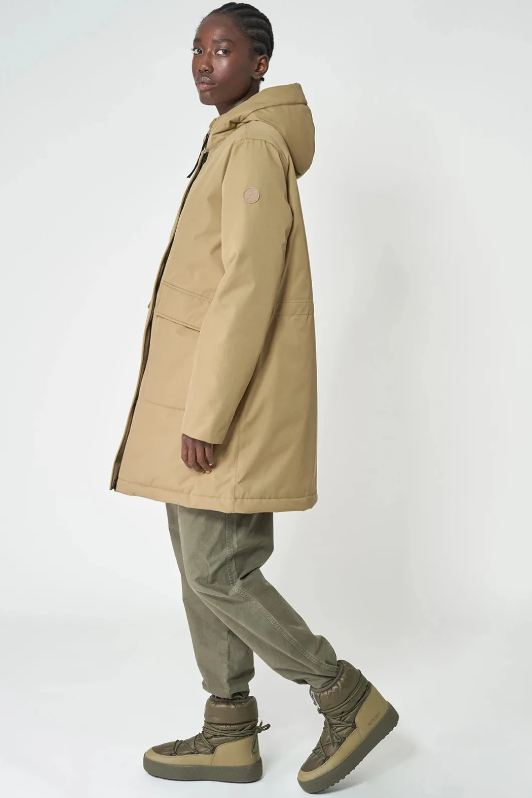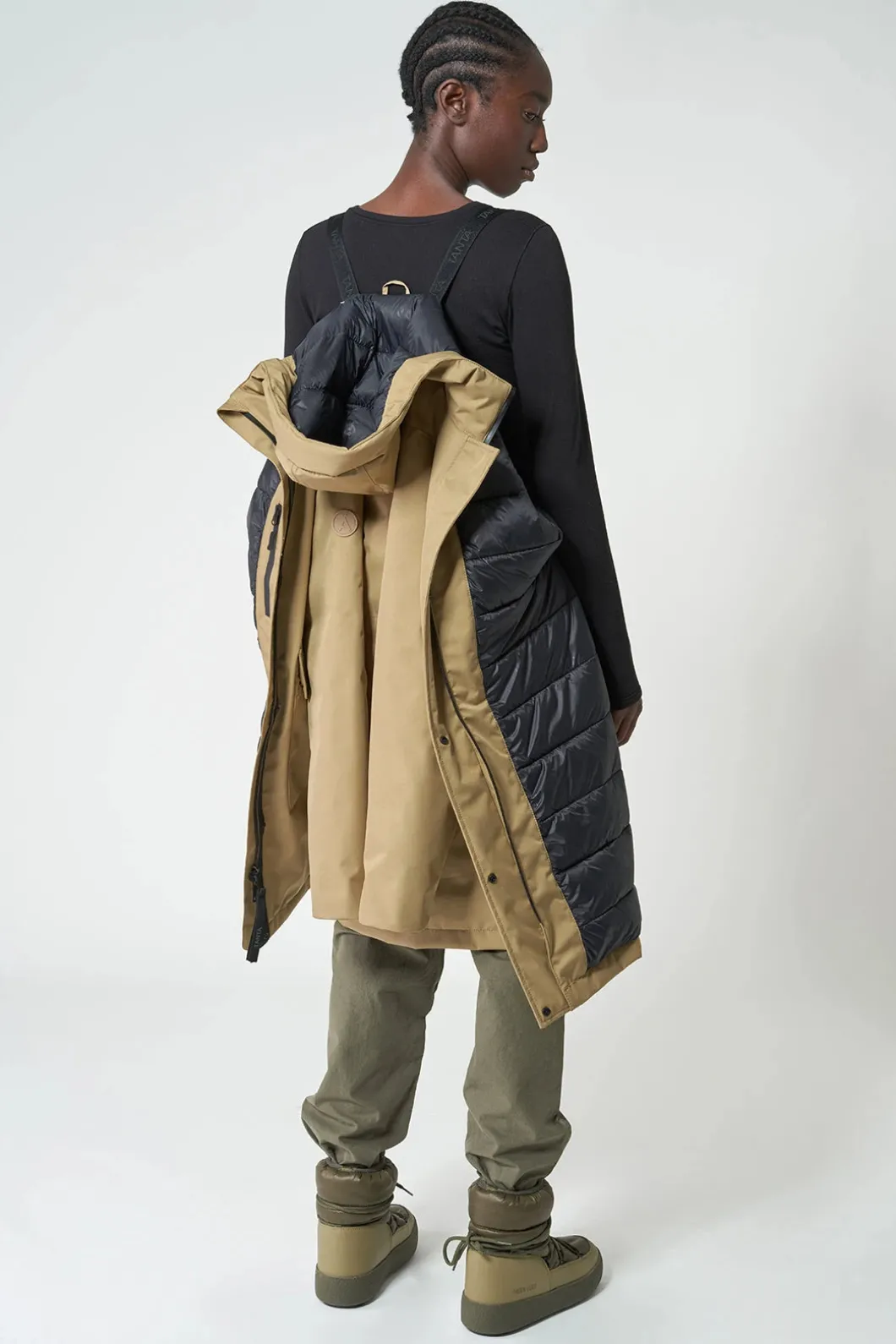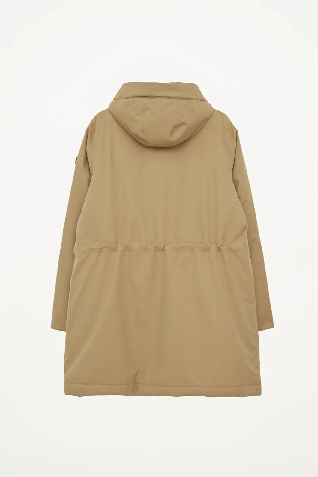 ¿Buscas una parka para todas las ocasiones? La respuesta está en nuestro abrigo Kar. Con un corte en forma de A y costuras totalmente selladas, está confeccionado en sarga de poliéster 100% impermeable y acolchado con una capa aislante transpirable y sin plumas. Incorpora una cremallera impermeable de doble cursor en la parte delantera, bolsillos plastrón y correas interiores tipo mochila para llevar la prenda. Puedes ajustarta como más te guste gracias la cintura ajustable con cordón que lleva en la espalda. ¡Nuestra versión de la parka imprescindible!
