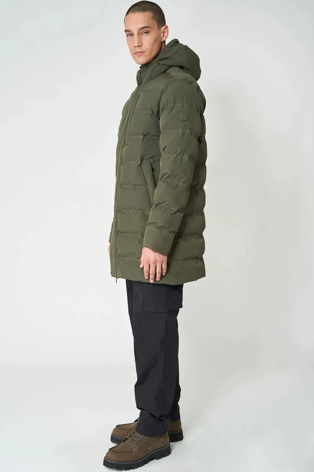 Una interpretación fresca y joven de la ropa deportiva metropolitana. El plumífero Borë está confeccionado con nuestro característico tejido Softshell y acolchado con una capa aislante transpirable y sin plumas. Presenta todas las costuras selladas, cámaras sin costuras, forro de nailon brillante, cremallera impermeable de doble cursor oculta y cierres de imán. Las correas interiores tipo mochila para llevar la prenda añaden funcionalidad.