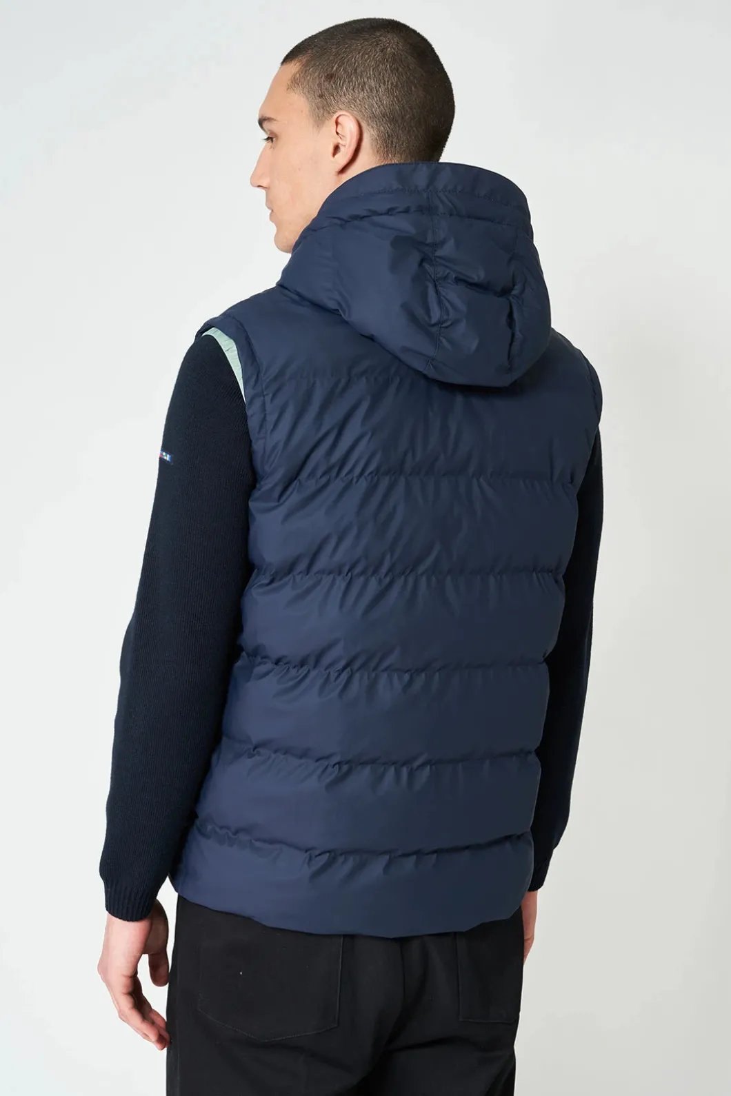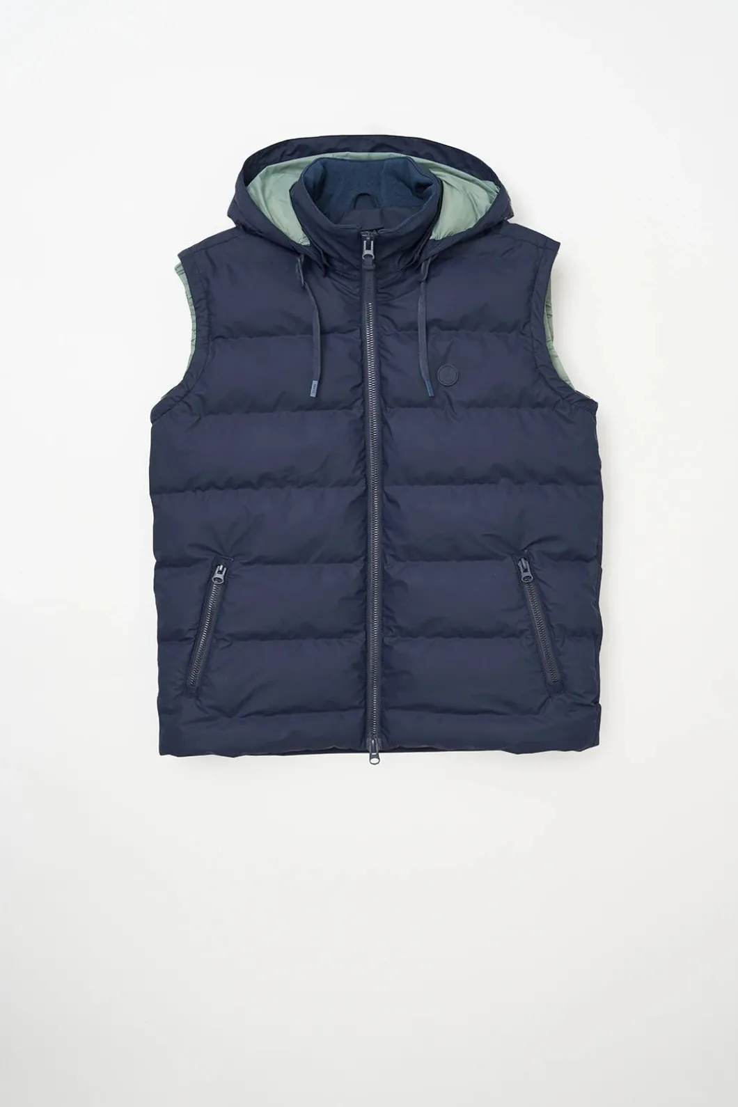 Chaleco acolchado Impermeable para caballero de Dam, diseñado para resistir los elementos. Fabricado con poliuretano impermeable y acolchado con una capa de aislamiento sin plumas, presenta compartimentos sin costuras, robustas cremalleras de resina en la parte frontal y los bolsillos, además de una capucha desmontable con cordón ajustable. Este chaleco ofrece un ajuste fiel a la talla