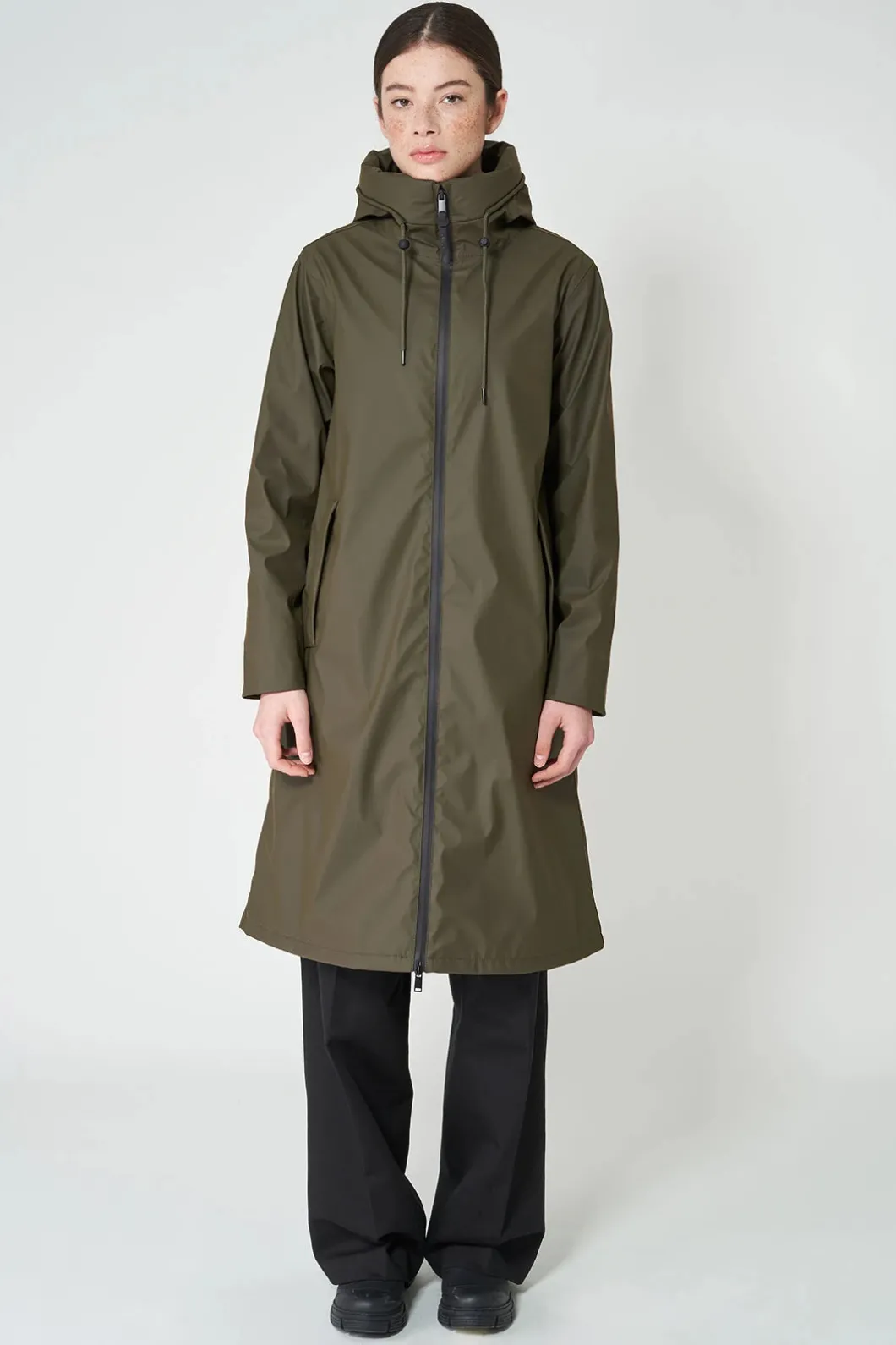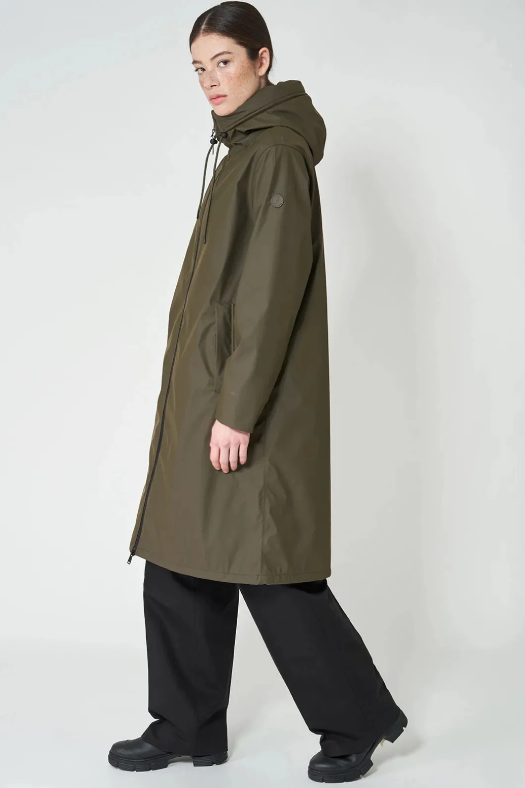 Prepárate para los fríos días de lluvia con el abrigo Neige. Combina la practicidad con un diseño limpio y sencillo, y está confeccionado en nuestro icónico PU mate 100% impermeable. Con una silueta ligeramente en A, cuenta con todas las costuras selladas, una cremallera impermeable de doble cursor en la parte delantera y una capucha estructurada con anchura extra y cuello alto. Con un aislamiento ligero, transpirable y sin plumas, te mantendrá seca y abrigada tanto en otoño como en invierno.