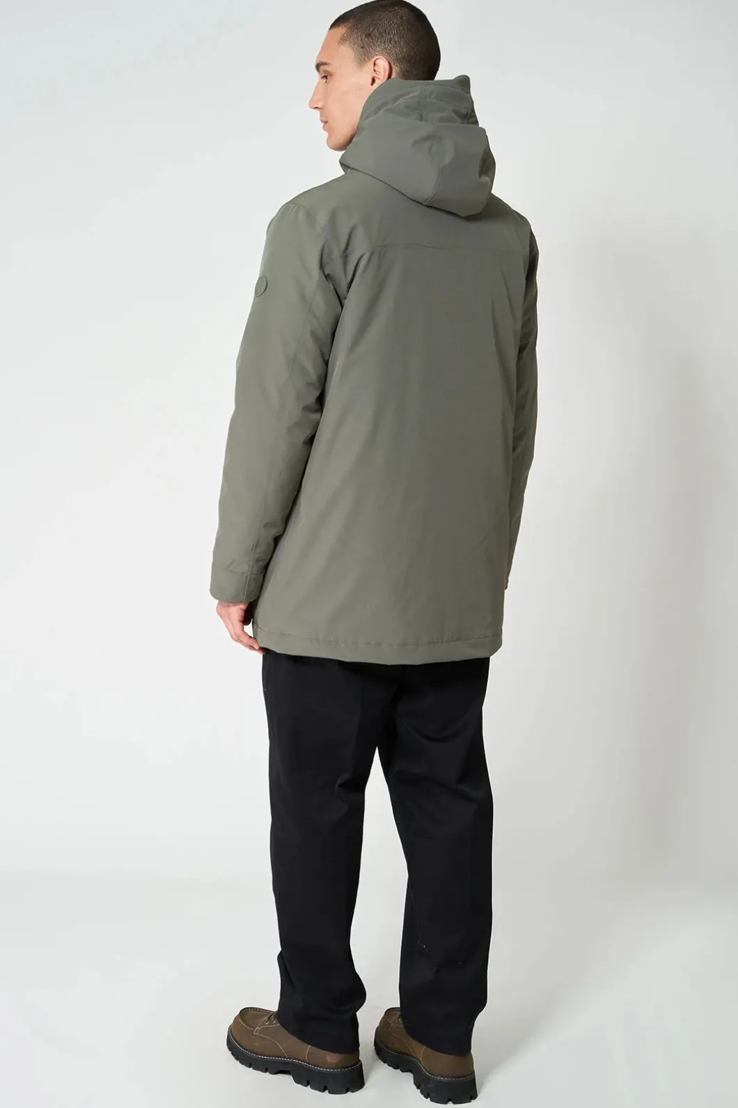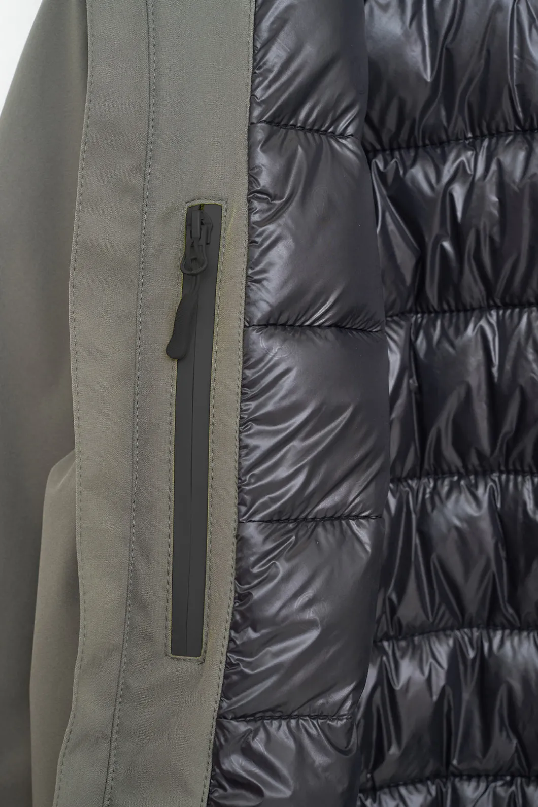 – Bolsillo en el pecho con cremallera impermeable y detalle para ocultar el tirador.