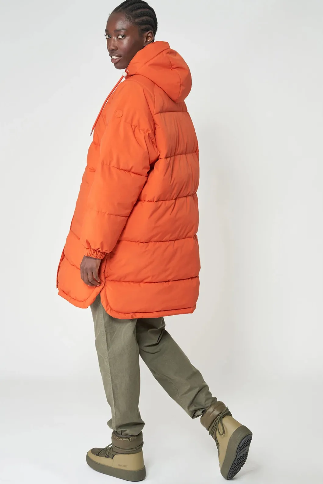 El Plumífero Lumi elevará todos tus looks favoritos gracias a su asombroso volumen y sus detalles únicos. Confeccionado en poliéster 100 % reciclado y acolchado con una capa aislante transpirable y sin plumas, este plumífero repelente al agua presenta un corte de estilo capa oversize, botones a presión a lo largo de los laterales, bolsillos plastrón y una amplia capucha.