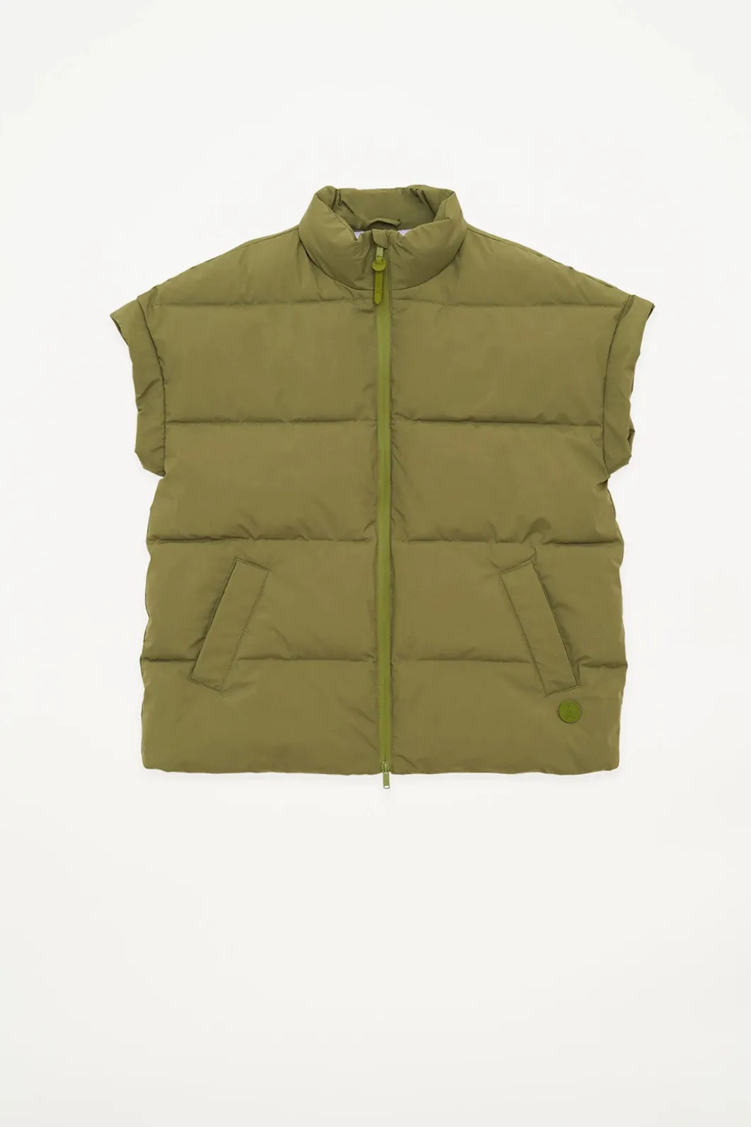 Chaleco impermeable acolchado repelente al agua de mujer confeccionado 100% en poliéster reciclado. Pozzanghera es una pieza clásica para ponerte sobre lo que quieras con una silueta holgada que presenta una cremallera frontal impermeable y cuello alto . Se ajusta a la talla real.