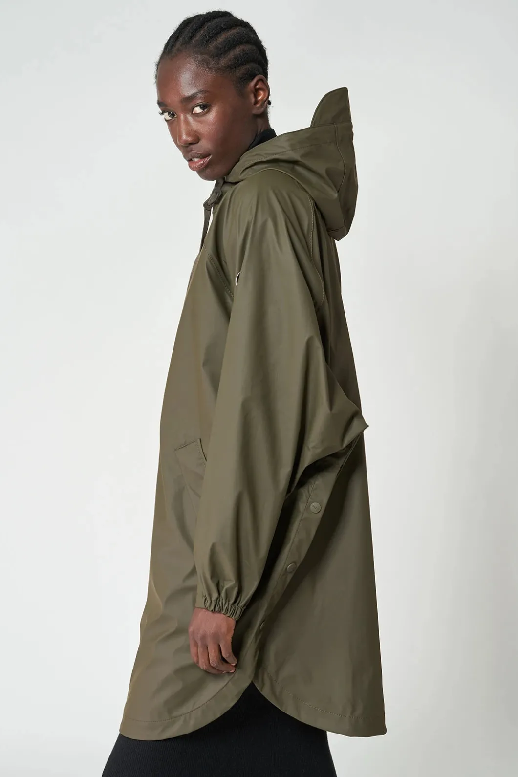 Chubasquero Impermeable diseñado para ir a donde quiera que vayas. Este poncho o capa de lluvia unisex con costuras y cremallera selladas puede resistir las inclemencias del tiempo. Confeccionado con nuestro icónico tejido de poliuretano, presenta todas las costuras selladas para una protección superior. Presenta un volumen oversize y botones con cierre a presión a lo largo de los laterales que le agregan fluidez y versatilidad a la prenda. No salgas de casa sin él.